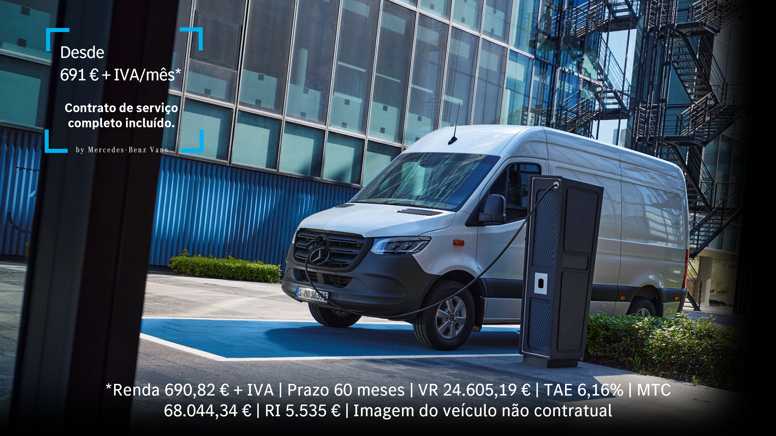 * Exemplo para eSprinter Furgão BASE 314/37 (81 kWh) 10,5 m3 em contrato Select & Drive de Locação Financeira Mobiliária com prazo contratual de 60 meses com valor mensal 690,82 €+IVA, Renda Inicial (RI) 5.535 €, e Valor Residual (VR) 24.605,19 €, 20.000 Km por ano, Taxa Anual Nominal (TAN) Fixa de 4,90%, Montante Total do Crédito (MTC) 68.044,34 €, TAE 6,16%, e que inclui Manutenção preventiva e corretiva, serviços de Assistência 24H e MobiloVan. Montante Total Imputado (MTI) 79.169,48 €. Contrato de serviço com valor mensal de 29 €+IVA incluído no valor da renda e na TAE. Acresce comissão de ativação de 395 €. Despesas de legalização e transporte incluídas. Consumo de energia combinado (kWh/100km): 28,8 – 29,2. Emissões CO2 combinadas (g/km) 0. Campanha válida para Clientes Profissionais e contratos ativados até 31.12.2025 e sujeita à aprovação da Mercedes-Benz Financial Services Portugal SFIC, SA, com registo no Banco de Portugal nº 0306. 2 – Os dados relativos à autonomia foram determinados com base no Regulamento 2017/1151 / EU e dependem da configuração do veículo, em particular da escolha da limitação de velocidade. A autonomia real também pode diferir de acordo com o estilo de condução individual, das condições da estrada e do trânsito, da temperatura exterior e da utilização do sistema de ar-condicionado/aquecimento.